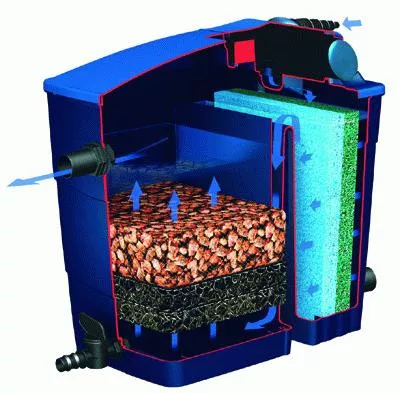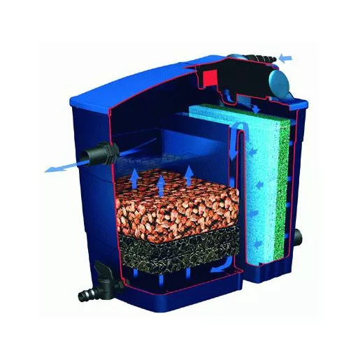 Designul filtrului permite ca apa să petreacă mai mult timp în mediile filtrante, crescând astfel eficiența filtrării mecanice și biologice.