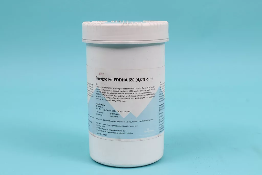 Easygro Fe-EDDHA 6% (4,0 o-o) este un microgranulat în care 100% din fier (Fe) este legat de chelatele EDDHA. Acest lucru face ca 100% din fier să fie disponibil pentru plantă la pH scăzut și ridicat al substratului. Chelata EDDHA are avantajul de a fi stabilă până la valori ale pH-ului de peste 10.