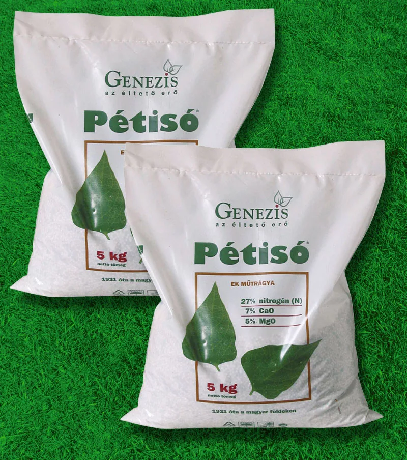 Hatóanyag-tartalma : ammónium-nitrát, dolomitliszt EK-műtrágya-előírások szerint : 27 % nitrogén (N); 5 % kalcium (Ca), kalciumoxidban kifejezve: 7 % CaO, 3 % magnézium (Mg), oxidban kifejezve: 5 % MgO Felhasználása A Pétisó nitrogénjében azonos arányban van jelen a lassabban ható ammónium-nitrogén, és a gyors hatást biztosító nitrát-nitrogén, ezért alap- és fejtrágyaként minden talajtípusra és növényi kultúrára egyaránt alkalmazható. A nitrogén mellett jelenlévő dolomittartalom csökkenti a talaj savasságát, ezért különösen ajánlott savanyú talajok kezelésére. A kalcium (magnézium) javítja a talaj szerkezetét, agyag-humin-komplexei révén morzsalékossá teszi (víz-, hő-, levegőmegtartó képessége nő a pórusosság miatt), növeli annak termőképességét. Az ionegyensúly javításával, a többi tápelem felvételét illetve hasznosulását növeli. Magnéziumtartalma miatt kedvező hatást fejt ki a magnézium-igényes növényi kultúrák - burgonya, cukorrépa, évelő pillangósok, kukorica, repce, zab, kertészeti és gyógynövények - termesztésénél.