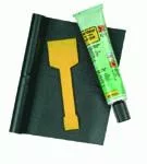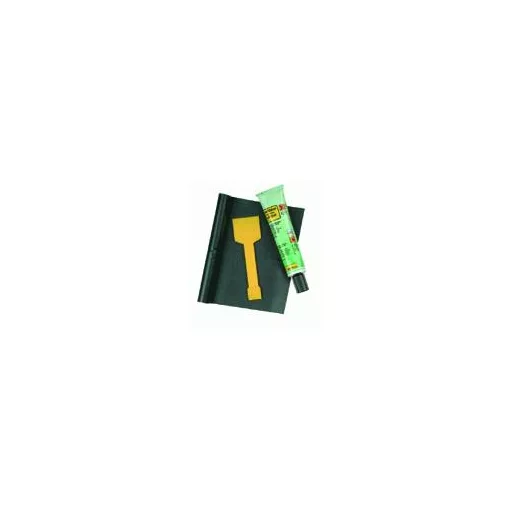 Conţinutul kitului de reparaţie: folie din PVC pentru iaz de 12,5 x 25 cm, un tub de adeziv pentru folie din PVC pentru iaz, o lopată din plastic.