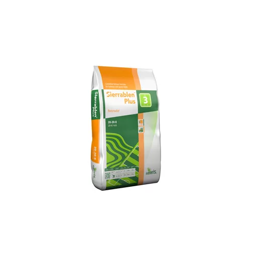 A SierrablenPlus Renovator 20-20-8 (3 luni) oferă alimentare nutritivă adecvată pentru gazonul suprasemănat sau proaspăt înființat. Datorită granulației mini poate fi distribuit uniform pe suprafața proaspăt însămânțată, asigurând o alimentare continuă a ierbii în curs de germinare fără risc de arsuri.