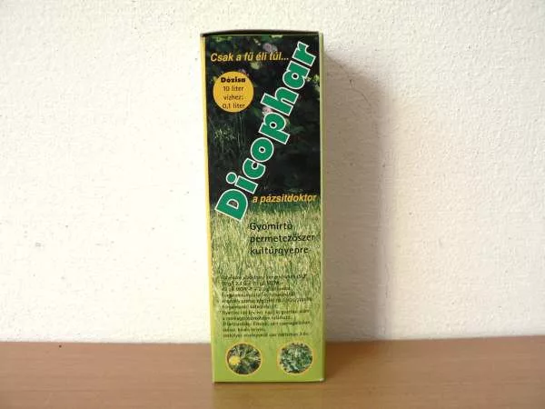 Aplicare: Produsul se aplică după cosirea gazonului, când reluarea creşterii buruienilor dicotiledonate a început din nou, în doza de 10 l/ha (100 ml / 100 m2). Cantitatea de apă necesară pentru aplicare este de 10 l / 100 m2. La tratament trebuie avută grijă ca soluţia pulverizată să nu ajungă pe culturi, deoarece le poate deteriora iremediabil. Produsul poate fi utilizat atât pentru tratare punctuală, cât şi pentru tratare pe întreaga suprafaţă. Se pot efectua maximum două tratamente într-o perioadă de vegetaţie. Interval minim între două tratamente: 28 zile. Nu trataţi gazonul mai tânăr de 6 luni de la înfiinţare. Nu folosiţi Dicophar în perioade de secetă prelungată sau dacă este prognozat precipitaţii în 6 ore după tratament. Nu trataţi imediat după cosire; aşteptaţi câteva zile până când buruienile reiau creşterea. După tratare aşteptaţi de asemenea câteva zile (5 zile) înainte de a cosi din nou gazonul. Nu folosiţi produsul pe fâneaţă, câmp sau păşune din cauza efectului asupra trifoiului! Interdicţie: este interzisă utilizarea pe păşuni; plantele cosite după tratament nu sunt potrivite pentru furajare. Perioadă de aşteptare pentru sănătatea alimentară: în cazul utilizării conform destinaţiei nu este necesară.
