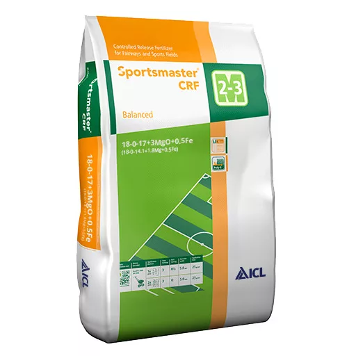 Îngrășământul Sportsmaster CRF 18+00+18+7CaO+3MgO+Fe (Balanced) este realizat cu tehnologiile de acoperire brevetate Poly-S și PACE ale ICL. Îngrășământ echilibrat NK fără fosfor, utilizabil în lunile de primăvară și vară.