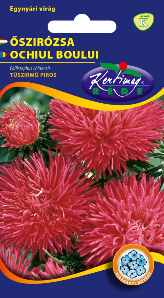 Callistephus chinensis - Steluţe de toamnă (Aster). Este floarea anuală cu cele mai variate soiuri. Se dezvoltă cel mai frumos la un loc însorit şi într-un sol semi-compact sau afânat, bogat în substanţe nutritive. Boala ei periculoasă este ofilirea, de aceea, se plantează la un loc unde, în anii anteriori, nu au fost plantate Steluţe de toamnă. Semănare: la începutul lunii martie se seamănă în pământ de răsadniţă sau în solare încălzite. La începutul lunii aprilie se poate semăna direct, dar astfel înfloreşte mai târziu. Utilizare: utilizarea diferitelor soiuri este variată, în Ungaria însă, Steluţele de toamnă sunt populare ca flori tăiate în august-septembrie. Soiurile înalte: 50-80 cm de înalte, se pot comercialza perfect ca flori tăiate, sunt soiuri bogate în nuanţe de culori. Soiul cu petale subţiri ca acele: are o înălţime de 50-80 cm, este ideal, în primul rând, ca floare tăiată, de asemenea, este foarte decorativ dacă este plantat pe suprăfeţe mai mari sau pentru a crea o pată de culoare. Frumuseţea inflorescenţei se datorează florilor cu petalele subţiri ca acele. Oferta noastră: alb, roz, roşu, albastru şi amestec de culori, într-un plic de 1 gr.