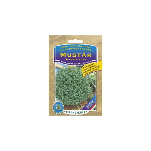 Utilizare: este excelent pentru a-l consuma cu pâine cu unt, în salate, în supe, în müsli. Este un vlăstar cu gust puternic, cu efect antibiotic. Curăță mucoasa. Are efect benefic asupră fierii și ficatului, reduce problemele digestive. Este stimulant, ameliorează durerile musculare, curăță sângele. Denumirea latină: Sinapis alba. Semănare: se poate semăna tot timpul anului. Pentru o farfurie de germeni se pune o lingură de semințe pe o hârtie umedă. Temperatură: 20°C. Udare: de două ori pe zi se clătește cu apă proaspătă. Perioadă de germinare: 2-3 zile.