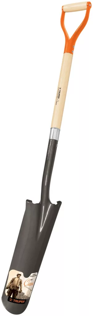Hârleț de canalizare mâner- D, cap din oțel tratat termic lungime 406 mm, mâner de 79 cm din stejar lăcuit asamblat cu un inel nou fără nituri