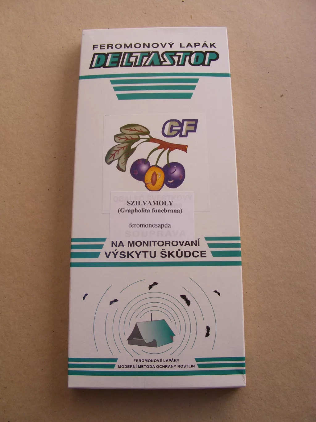Capcanele cu feromoni pentru molia de mere și molia pielitei fructelor (Adoxophyes reticulana) conține două capcane de parfum, cel pentru molia de prune și molia fructelor de est precum și pentru molia viței de vie (Eupoecilia ambiguella si Lobesia botrana) conțin trei capcane. Capcanele cu feromoni atrag masculinile fluturilor de molie cu aromă specifică fiecărei specii. În așa fel se poate ține în evidență apariția și roirea diferitelor dăunători de molii în zonă. Pe baza desenului din pachet asamblați casa de capcană și puneți capcana cu feromoni în locul potrivit. Cu ajutorul firului de sârmă din pachet atașați capcana pe copac la nivelul ochilor, la un loc în care vântul nu este prea tare. Este recomandabil să se aplice două capcane cu feromoni ca să primim o imagine mai exactă despre infecția zonei. Capcane trebuie verificate cel puțin o dată în fiecare 2 zile și trebuie scrise datele privind capturile pentru a determina mai ușor vârful de roire. În fiecare zi indepărtați captura zilei de pe foaie, si dacă foaia adezivă se umple trebuie înlocuit cu una nouă. Capcanele cu feromoni trebuie înlocuite în fiecare 4-5 săptămâni. Utilizarea capcanelor cu feromoni va ajuta la alegerea datei corecte pentru metoda rezonabilă și necesară a protecției culturilor.