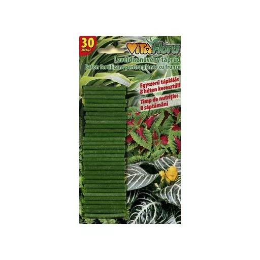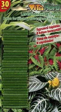 VitaFlora baton de îngrășământ pentru plante ornamentale cu frunze. Baton de îngrășământ pentru fiecare plantă ornamentală care podobește cu frunză.