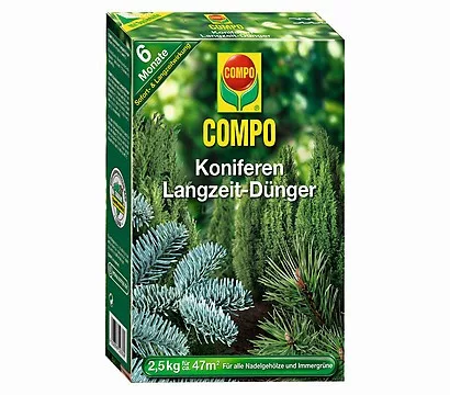 Prin utilizarea de o dată a îngrășămintelor COMPO pentru pini cu o acțiune de lungă durată se poate furniza plantele pentru întregul sezon cu nutrientii necesari. îngrășământ inovatoare, cu acțiune de 6 luni, care devine absorbabil pentru plante în măsura în care este necesar. 1. efect imediat: O parte din substanțe devin imediat absorbabile pentru plante. 2. Impactul pe termen lung: O altă parte din substanțe nutritive în grad controlat se emit Avantaje: - compoziție adecvată pentru nevoile pinurilor și plantelor perene Protejeaza plantele de tăbăcirea frunzelor, prin utilizare crește rezistența plantelor la boli și dăunători.