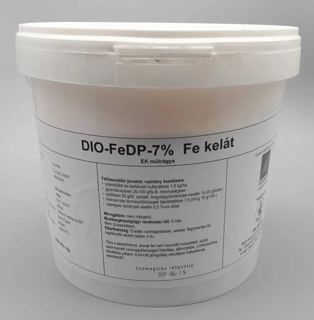 Home use: 1 g/10 l water. FE DP 7% iron chelate EC fertiliser for iron deficiency. Use: -in arable and horticultural crops 1-5kg/ha, -in orchards 20-100g/ha, -in vines 50g/ha, -for shrubs, berries: 10-20g/bush, -in nutrient solution for hydroponic growin...