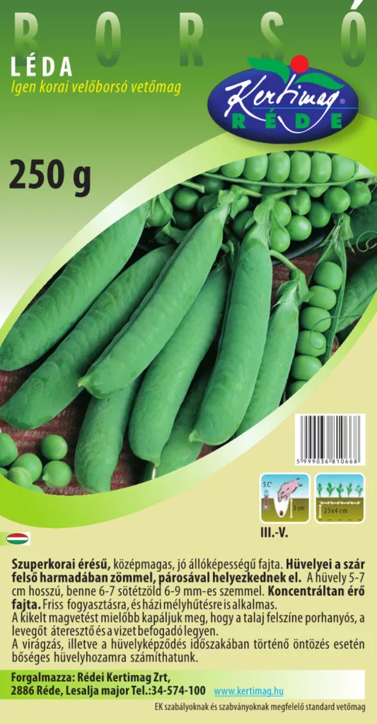 Mazăre super de primăvară! Printre soiurile de mazăre cultivate în prezent, este soiul cel mai devreme (timp de creștere de la însămânțare până la recoltare: 67-71 zile). Este mediu-înalt, nu este ramificat. Tecile sale se află în partea superioară a tijei, cele mai multe dintre ele fiind în perechi. Tecile au o lungime de 5-7 cm și au 6 până la 7 ochi verzi. Gradul de maturitate verde este concentrat.