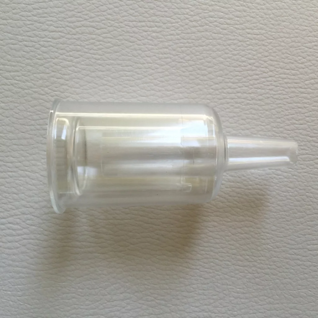 Gogâlț cilindru, este alcătuit din două părți. Curat ca apa. 140x120mm, conexiune fi de 28mm, este recomandată pentru rezervor de peste 800L Cu acest instrument eliberați excesul de dioxid de carbon în exces din vasul de fermentație, fără a permite aerului să intre. Așezați gogâlțul în castron în direcția tijei și apoi umpleți-l cu apă.