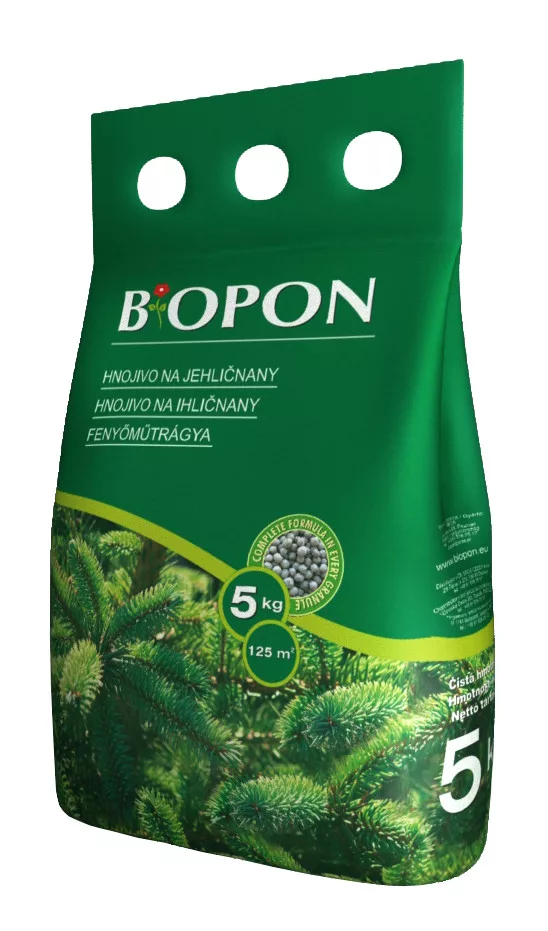 Îngrășământ multicomponent pentru conifere. Conține mineralele necesare pentru menținerea pH-ului solului. Magneziul adăugat previne brunificarea acelor.