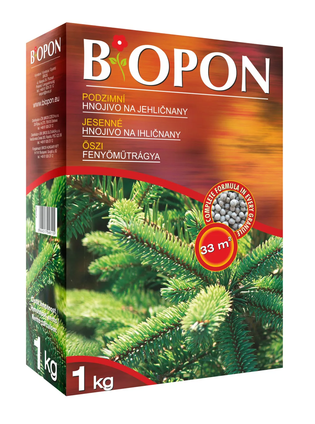 Îngrășământ fără azot multi-component pentru furnizarea de nutrienți de toamnă a coniferelor. Asigură colorarea corectă a acelor de pin și promovează procesul de formare a lignitului, care protejează împotriva frigului. Doză: 1 kg / 33nm