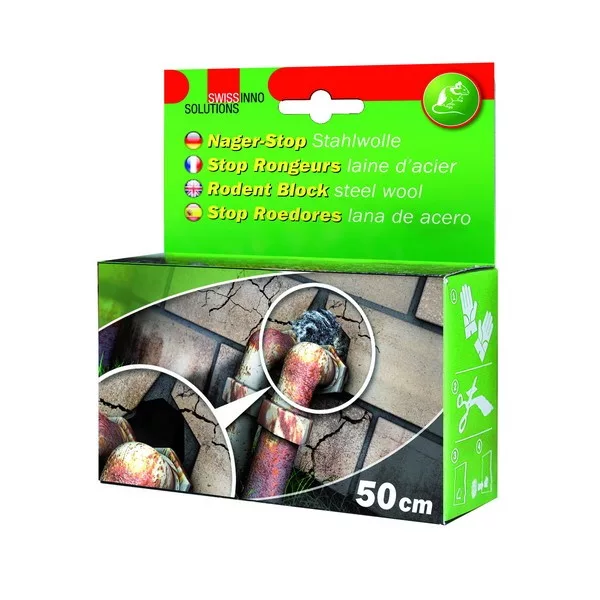 - lână de oțel din oțel inoxidabil practic pentru umplerea găurilor și crăpăturilor în perete. Împiedică intrarea rozătoarelor și a altor dăunători în clădiri, case și alte clădiri. -50 cm lungime -5 cm lățime