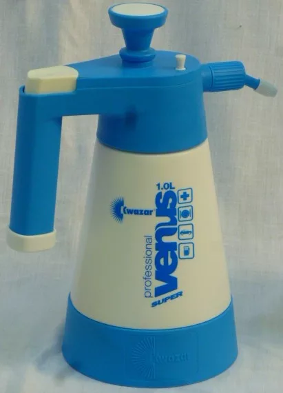 Kwazar Venus pro+ SUPER este un pulverizator continuu cu o singură apăsare de buton, pulverizator portabil cu unghi reglabil și duză cu articulație sferică cu model de pulverizare. Capacitate de 1,0 litri, bară transparentă indicatoare de nivel, capacitate de 1/4 litri, etanșare viton rezistentă la ulei, inel de protecție a fundului pentru stabilitate sporită.