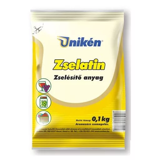 Utilizare: Gelatina este un material galben caracteristic, aromatizant și parfumant, care este folosit la tratarea băuturilor, pentru jeleuri, jeleuri de fructe, prăjituri, creme si prepararea sosurilor aspic. Aplicare și dozare: Pentru vinificare, la o porție de gelatină se toarnă cinci părți apă rece sub agitare continuă și se lasă să se umfle o jumătate de oră. Apa rămasă este apoi decantată și amestecul se dizolvă în apă caldă, dar nu fierbinte de cantitate de 5-10 ori (40-50 ° C). Soluția astfel obținută trebuie utilizată pe scurt. Se utilizează în mod obișnuit în combinație cu silice sau acid tanic. Cantitatea necesară trebuie întotdeauna să fie precedată de teste de laborator, dar doza medie este de 5-10 g / hl. Pentru alte utilizări, se adaugă gelatină cu cinci părți apă rece sub agitare continuă și se lasă să se umfle. După umflare, excesul de apă este aruncat și amestecul trebuie dizolvat în apă caldă, dar nu în apă fierbinte de cantitate de 5 ori (40-50 ° C). Apoi îl folosim cât mai curând posibil, în conformitate cu rețeta. Doza uzuală la piftie: la 4-5 farfurii 4-5 lingurite cu vârf, jeleu de aspic la 1 dl două lingurițe pline cu vârf, jeleu de fructe la 1 dl apă 2 lingurițe de nivel. Depozitare: Depozitați într-un loc uscat, răcoros, fără miros.