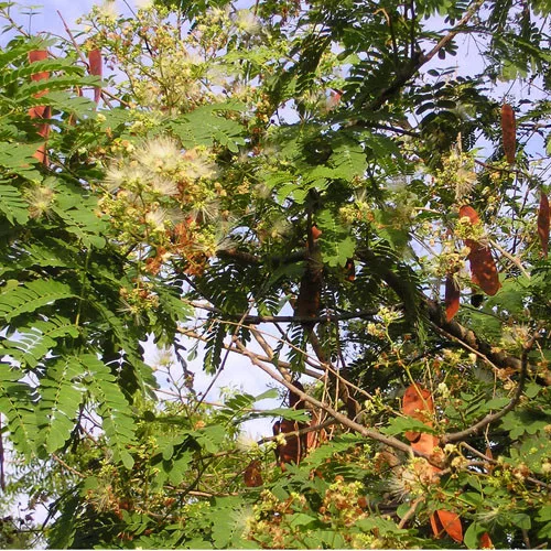 Numele cunoscut: Albizia odoratissima - Trnadafir Ceylon, Ceylon Rosewood, Fragrant Black Siris Habitatul natural India, Himalaya, Pakistan, Asia de Sud-Est. Este un copac foarte popular, care este cultivat în mod special din cauza furajelor sau a valorii sale decorative. Floarea lui este cremoasă și parfumată. Fructele sale sunt teci frumoase, culoare maro deschis. Creșterea sa este rapidă, chiar 1m pe an. Înălțimea sa este în condiții naturale de 15 până la 25 de metri. Germinarea este ușoară. Tolerant la îngheț. Albizia Salcâm mătase: aproximativ 150 de arbori, arbuști și plantă târâtoare fac parte din familia Fabaceae. Frunzele oferă un aspect grațios fiind de două ori compuse, aspect de pene, datorită inflorescenței similar de o perie, cu stamine lungi de culoare roz sau cremos. Este Roadele sunt teci plate. Are creștere rapidă. Cele mai multe sunt rezistente la secetă și îngheț. Frunzele și roadele sale se utilizează ca hrană pentru animale în timp ce coaja este folosită pentru fabricarea săpunului. Cultivarea: nu este exigent la sol, dar solul bine drenat are un efect pozitiv la creștere, are nevoie de habitat protejat de vânt.
