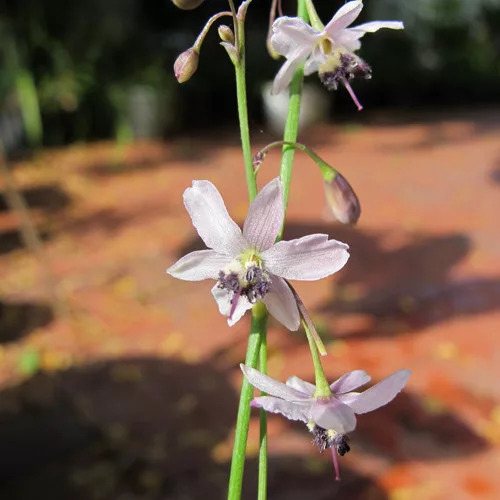 Numele cunoscut: Arthropodium Milleflorum - Crin de vanilie pal, Pale Vanilla Lily Natal în Australia, varietate de specii de crin veșnic verde. Frunzele de paie sunt de 60 cm lungime, albastru-verde. În formă de stea, florile de liliac vanilie palid sunt de 2-3 cm, cresc într-un tufiș vărsat în mijlocul verii. Rădăcinile sale vor avea o lățime de 2-3 cm, rizomii sunt comestibili chiar crude. Înălțime max. 30 până la 45 de cm. Preferă o drenare bună, sol nisipos, turbă, o zonă caldă și protejată Este foarte ușor de crescut. Caracteristica sa este că are o strălucire puternică de vanilie în zilele fierbinți de vară! Pentru cea mai bună creștere, nutriți bine și presărați cu multă apă. În timpul iernii, rizomii trebuie să fie luați și într-un loc răcoros. ARTHROPODIUM Familia mică a familiei Laxmanniaceae, În Australia și Noua Zeelandă, sunt aproximativ 12 specii, veșnic verzi și foioase, cu tulpini cărnoase. Cresc noduri, frunzele lor sunt drepte, ca o curea lungă. Florile sunt albe sau violete, cu 6 petale cu margini franjurate, cu stamine galbene și purpurii. Florile lor sunt bougainvillea.