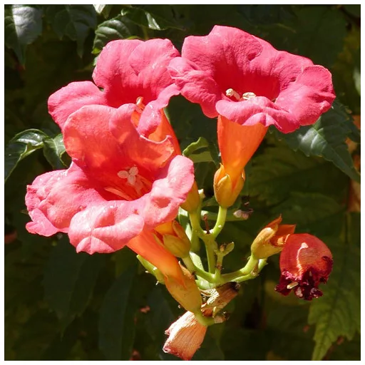 Cunoscut nume: Campsis radicans, Trompeta cățărătoare, Cățărătoare american Cu origin din sud-estul SUA, plante care cresc ca buruienii. Pe un pământ nutritiv crește foarte mare, agățându-se cu rădăcinile aeriene. Florile roșii înfloresc la sfârșitul lăstarilor grupate în timpul verii. Planta este mediu-exigent de apă, se simte bine la locuri calde și însorite. Este tolerant la îngheț.