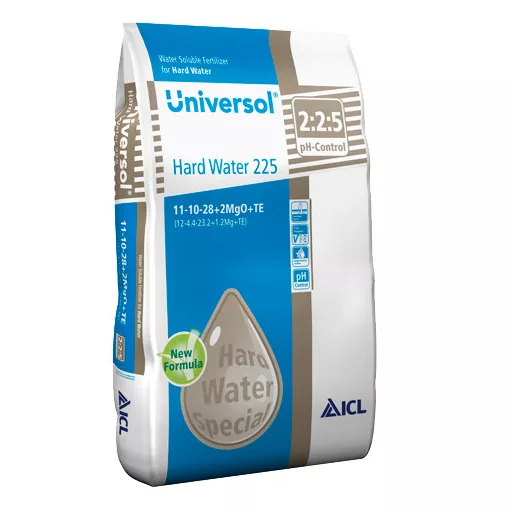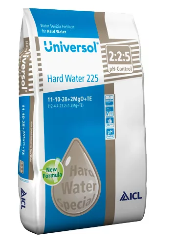 Poate fi utilizat în special la plante ornamentale înflorescătoare pentru a obține un habitus compact și pentru a întări plantele. Datorită raportului N:K de 2:5 poate fi folosit în cazul apelor de irigare relativ bogate în azot, precum și împreună cu alți compuși azotați (de ex. acid azotic). Universol Hard Water 225 înmoaie apa dură de irigare, neutralizând conținutul acesteia de bicarbonat.