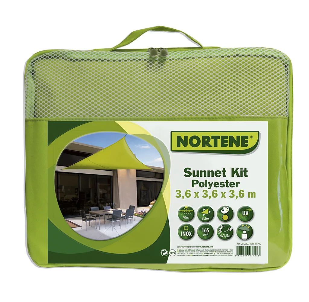 Pentru umbrire și protecție împotriva ploii. Cu părți întărite și în colțuri echipat cu inel din oțel inoxidabil. Instalare rapidă. La instalare trebuie să se asigure că materialul este întins în mod corespunzător și ușor înclinat, deoarece cu acesta poate fi evitat ca ploaia și frunzele să se adună pe partea de sus a foii.