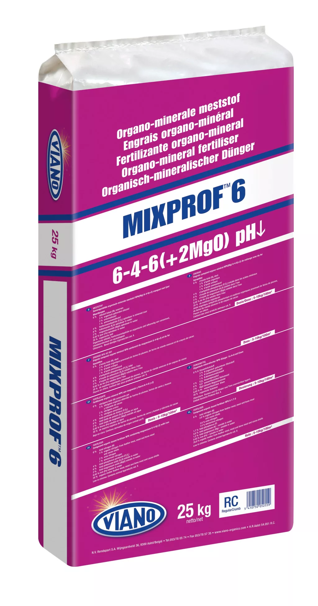 Descriere produs: Complex organic, nutrient acidic, NPK, îmbogățit cu magneziu. Magneziu adăugat (Mg) garantează culoarea verde strălucitoare, vie a plantelor, o înflorire abudentă și are ca rezultat conservarea pe termen lung a florilor tăiate. Elementele nutritive de corectare a pH-ului pot fi folosite în soluri cu conținut ridicat de calciu (care etermină scăderea pH-ului). Acțiune de lungă durată (3 luni), rapidă și blândă, nu arde, nu pârjolește. Cel mai bun efect este obținut prin amestecarea corespunzătoare cu solul Utilizare recomandată: - pentru plantele ornamentale cu necesitate de sol acru (plantare + nutriție) - atât pentru culturile de câmp cât și pentru plantele în containere - pentru suprafețele de gazon cu conținut ridicat de calciu - pentru pregătirea solului - Hydrangea (Hortensie), Rhododendron, Azalee, Skimmia, Pieris, Calluna, Erica, ...poate fi utilizat Ambalaj: 25 kg Aplicație: J F M A J J A S O N D; Temperatură optimă: 12-15 ° C (în aer liber) Dozare: 10-25 kg / 100 m2