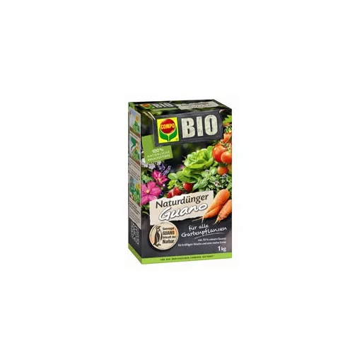 NPK - îngrășământ 9 + 7 + 4 • În mod optim și natural, pentru timp de câteva săptămâni, asigură furnizarea pe termen lung de nutrienți pentru plantele de grădină, legume și fructe. • conține guano în cantitate mai mare de 70%. • mineralele utile și potasiul din sedimente marine oferă un raport echilibrat de minerale importante. DESCRIERE PRODUS Un îngrășământ natural unic, care este derivat din sedimente marine, este utilă cu pulberea minerală și potasiul îmbogățit cu guanoul de păsări de mare, conținând mai mult de 70% din puterea concentrată a guanului. Acesta poate fi folosit pe tot parcursul anului pentru orice plantă de grădină. Plantele sunt mai sănătoase și vizibil mai frumoase. Creșterea lor, înflorirea și rezistența cresc. Conține ingrediente naturale 100%. Substanțele organice utile stimulează activitatea solului, îmbunătățesc formarea humusului și fertilitatea solului. BENEFICIILE ÎNGRĂȘĂMÂNTULUI COMPO BIO CU GUANO PENTRU PLANTE DE GRĂDINĂ Pentru noi, guano este cea mai pură formă de stimulente naturale de creștere. Una dintre cele mai vechi și mai valoroase surse naturale de nutrienți. Existența sa se datorează, în mare măsură, cantității de păsări consumatoare de pește, ale căror excremente sunt depozitate pe coaste și pe insule. Cu toate acestea, nu numai materiile prime afectează valoarea adevăratului guano, dar și efectele naturale, cum ar fi soare puternic, vreme uscată. Acest lucru va ajuta la mentinerea nutrientilor si ingredientelor utile, contribuind semnificativ la calitatea gunoiului natural. Se compune numai din materii prime, care sunt adecvate pentru agricultura ecologică în temeiul Regulamentului (CE) nr. 834/2007. Dozare: în funcție de planta 30-90g / plantă