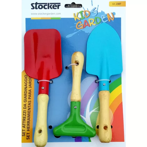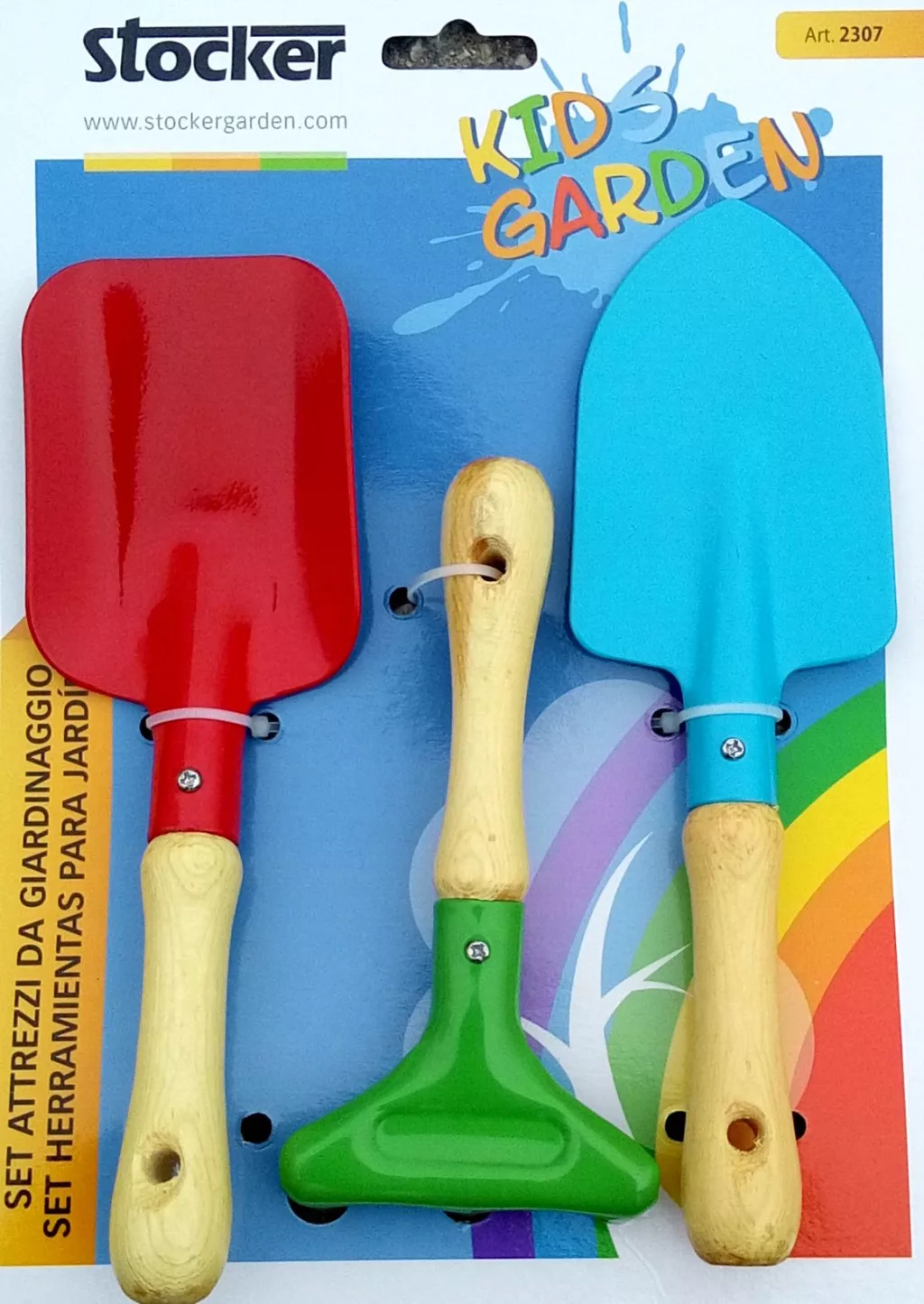 Set de  instrument de grădină pentru copii  3 buc, galben. Conținutul pachetului 1 greblă, 1 sapă și 1 lopată.