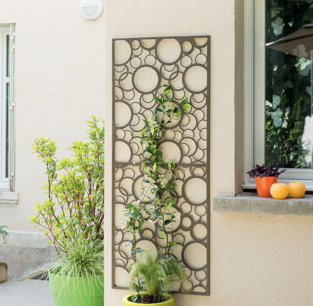 Panou metalic cu motive decorative Se poate folosi pentru creșterea plantelor, dar și ca panou de separare. Este ușor de instalat sau poate fi legat la pământ cu o componentă separată.