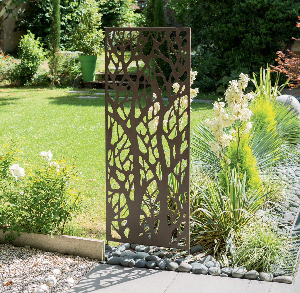 Panou metalic cu motive decorative Se poate folosi pentru creșterea plantelor târâtoare, dar și ca panou de separare. Este un instrument excelent pentru montarea pe perete sau cu un dispozitiv separat poate fi introdus în pământ.