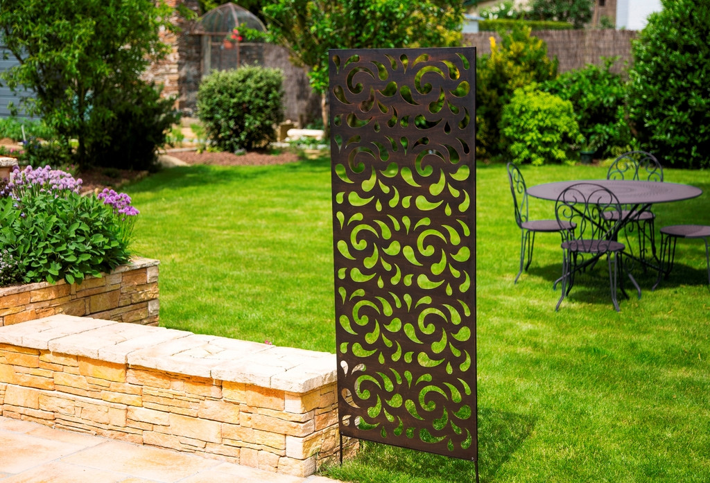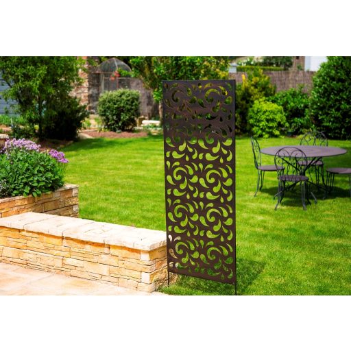 Panou metalic cu motive decorative Se poate folosi pentru creșterea plantelor târâtoare, dar și ca panou de separare. Este un instrument excelent pentru montarea pe perete sau cu un dispozitiv separat poate fi introdus în pământ.