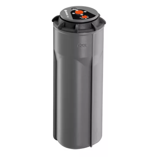 Sprinklerul cu turbină GARDENA T 200, care face parte din sistemul de stropire GARDENA, este ideal pentru irigații de pajiști de mărime medie de până la 200 m². Sprinklerul cu turbină T 200 poate fi combinat cu sprinklerul cu turbină T 100 și 380 (număr articol 8201-29 și 8205-29), și cu sprinklerul dreptunghiular scufundat OS 140 (număr articol 8220). Domeniul său de acțiune poate fi reglat de la 5 la 8 m, în funcție de suprafață. Capul de aspersoare poate fi configurat în intervalul de 25-360 ° fără a avea nevoie de instrumente pentru a seta sectorul dorit de irigare. Suprafața udată poate fi realizată din cel mai mic sector până la cercul complet prin orice parte. Prin intermediul funcției sale de memorie, sprinklerul revine automat la udarea sectorului prestabilit, chiar și atunci când este rotit intenționat capul sprinkler. Ca urmare, instrumentul va iriga întotdeauna suprafața corespunzătoare. Pentru flexibilitatea irigării, patru duze de curgere diferită a apei pot fi ușor selectate pe baza sectorului individual de irigare. Atunci când este utilizat împreună cu dispozitive de aspersiune cu diferite setări, acest lucru este important în mod special pentru udarea uniformă. Filtrul de contaminare încorporat permite funcționarea neîntreruptă. Acționarea sigură a turbinei cu toleranță la nisip oferă o durată lungă de viață. O supapă de deshidratare (număr articol: 2760-20) este instalată în conductă, sistemul de sprinklers poate fi rezistent la îngheț. Racordul este realizat cu filet interior de 1/2 ".