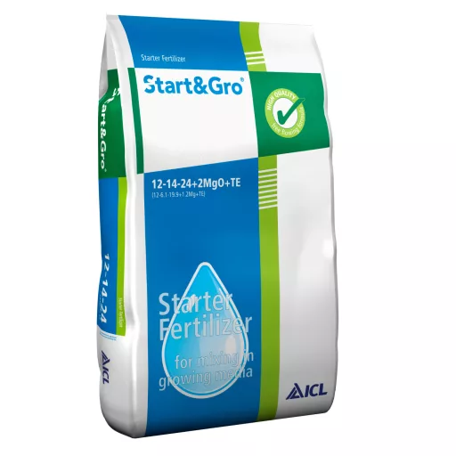 Start & Gro este un îngrășământ de pornire special ICL pentru ghivece, parcele şi plante de pepinieră cultivate în containere. Start & Gro a fost conceput pentru a sprijini dezvoltarea rapidă inițială a plantelor în primele săptămâni de cultivare. Îngrășământul este 100% solubil în apă, cu conținut ridicat de chelați, bine amestecabil.