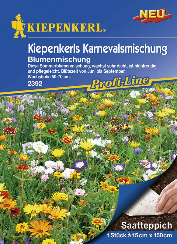 Covor semințe de flori pentru cutie de balcon – paturi de flori cu înălțime mare Panglică de semințe de 1 x 15 x 150 cm Un amestec de flori anuale într-o cutie de balcon sau un pat de flori cu înălțime mare. Înălțime: 15-45 cm.