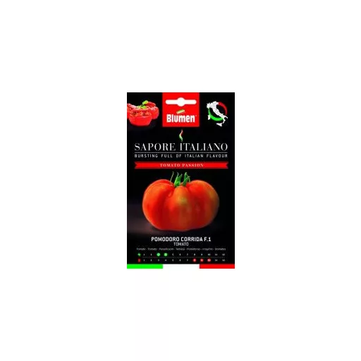 HIBRID "Lupta cu taur"(Corrida Solanum lycopersicum L. F1)- este în continuă creștere. Exigent la soare. Temperatura de însămânțare recomandată: 20/30 ° C. Poate fi plantată în aer liber și într-un cort. Semințele trebuie plantate la o distanță de 50 cm, 0,5 - 1 cm adâncime. Timp de însămânțare: martie - aprilie, maturare: august - oct. Sezonul de plantare și recoltare poate varia de la o regiune la alta, comparativ cu cel de mai sus. Cu o ambalare dublă, garantăm o calitate superioară și o germinare garantată conform sistemului 3 P.A.C.