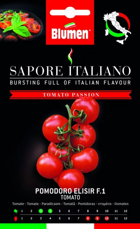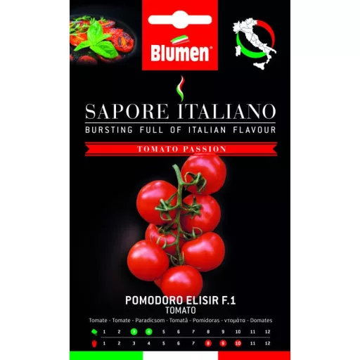 HIBRID „ELIXIR” (Elisir Solanum lycopersicum L. F1) - este în continuă creștere. Exigent la soare. Temperatura de însămânțare recomandată: 20/30 ° C. Poate fi plantată în aer liber și într-un cort. Semințele trebuie plantate la o distanță de 50 cm, 0,5 - 1 cm adâncime. Timp de însămânțare: martie - aprilie, maturare: august - oct. Sezonul de plantare și recoltare poate varia de la o regiune la alta, comparativ cu cel de mai sus. Cu o ambalare dublă, garantăm o calitate superioară și o germinare garantată conform sistemului 3 P.A.C.