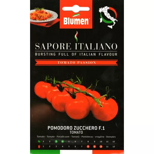 HIBRID „Zahăr” (Zucchero - Solanum lycopersicum L. F1) - este în continuă creștere. Exigent la soare. Temperatura de însămânțare recomandată: 20/30 ° C. Poate fi plantată în aer liber și într-un cort. Semințele trebuie plantate la o distanță de 50 cm, 0,5 - 1 cm adâncime. Timp de însămânțare: martie - aprilie, maturare: august - oct. Sezonul de plantare și recoltare poate varia de la o regiune la alta, comparativ cu cel de mai sus. Cu o ambalare dublă, garantăm o calitate superioară și o germinare garantată conform sistemului 3 P.A.C.