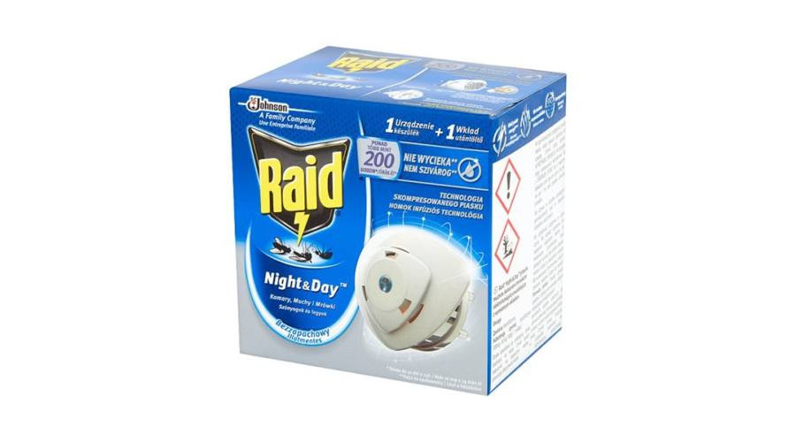 Discul insecticid Raid pentru ţânţari şi muşte oferă protecţie eficientă împotriva ţânţarilor şi muştelor timp de 10 zile, 24 de ore pe zi. Reîncărcarea pentru aparatul electric, realizată cu tehnologie nouă, conţine nisip presat impregnat cu substanţă insecticidă fără parfum pentru muşte şi ţânţari, care oferă protecţie timp de 10 zile împotriva ţânţarilor şi muştelor.