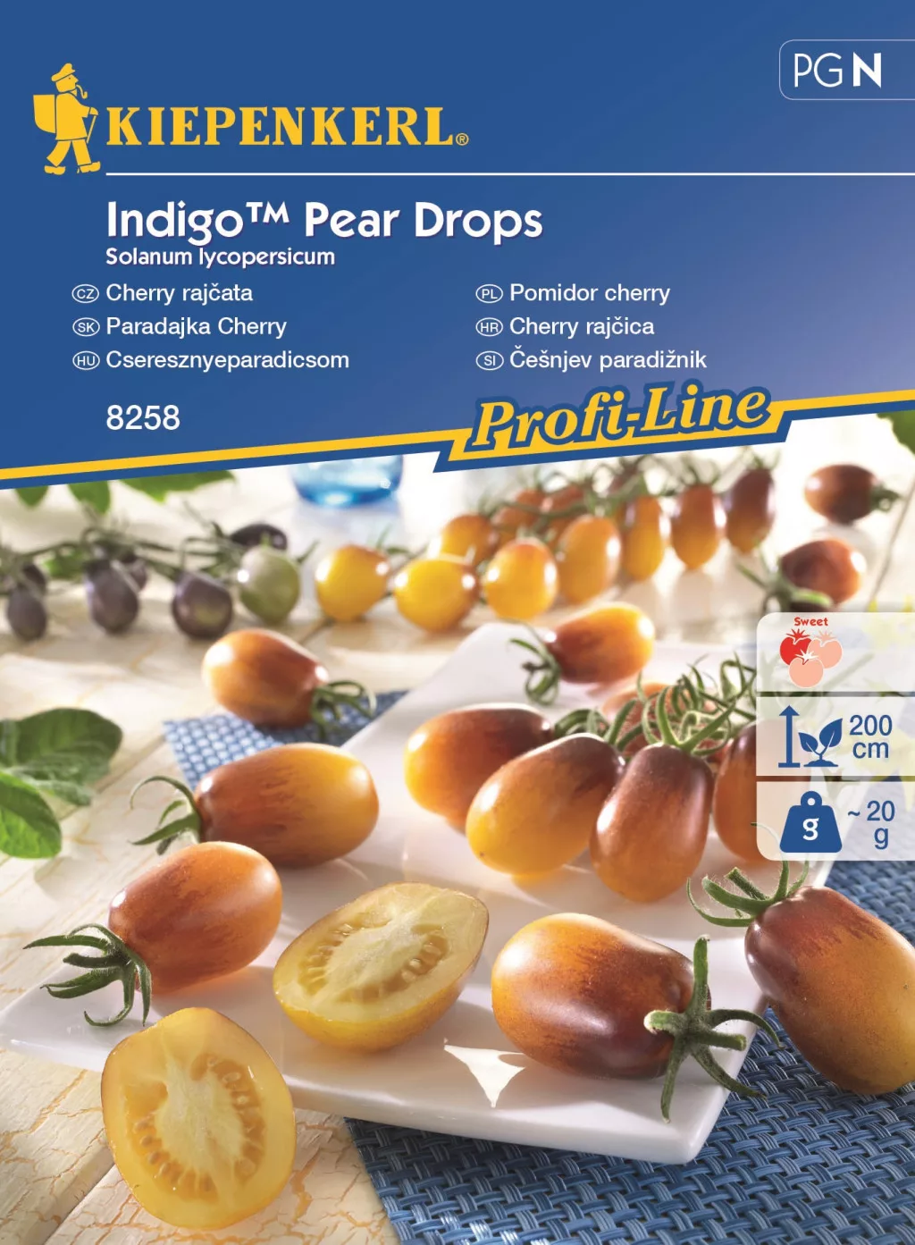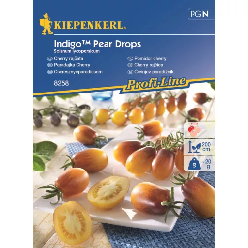 Fructe în formă de pară, decorative, plăcut dulci, galbene și mov. Aduce 60-100 de fructe per plantă.