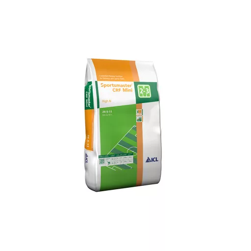 Sportsmaster CRF Mini High N este un îngrășământ complex cu eliberare controlată a nutrienților, un amestec de granule acoperite și convenționale, neacoperite, pentru o dezvoltare uniformă. Granulele neacoperite oferă gazonului o sursă imediată de nutrienți disponibili.