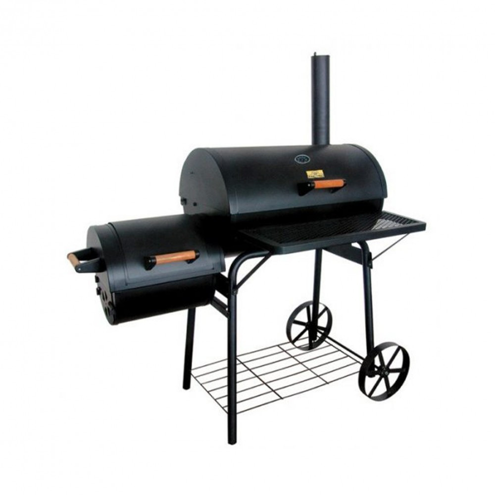 Grătar pe cărbuni echipat cu două camere de grătar.