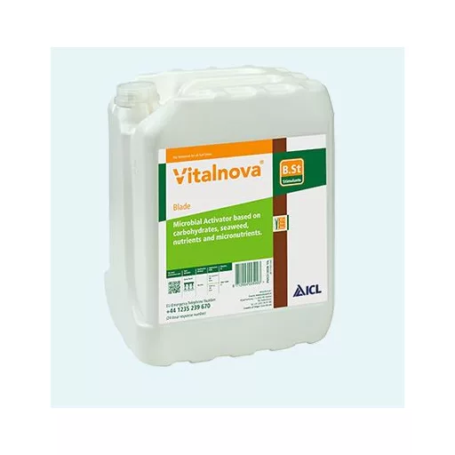 Vitalnova ® Blade este un produs lichid care reprezintă viitorul hrănirii gazonului. Oferă o sursă directă de energie pentru gazon, conține macro- și microelemente, extract de alge marine și carbohidrați care furnizează zaharuri simple ușor de utilizat acolo unde sunt necesare. Îmbunătățește viața solului prin îmbogățirea populației bacteriene și sprijină dezvoltarea coloniilor de micorize, astfel rădăcinile devin mai sănătoase și mai viguroase. Semințele de gazon germinează mai repede, gazonul se consolidează mai rapid, ciclul nutrienților este intensificat, deoarece nutrienții fixați devin accesibili pentru gazon. Conține NPK, precum și fier și alte microelemente.