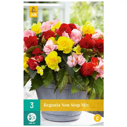 Begoniile Non Stop Mix pot fi admirate luni întregi și sunt printre adevăratele flori de vară și toamnă. Begoniile sunt ușor de îngrijit și necesită puțină atenție. Florile mari și duble arată minunat pe balcoane și terase, dar și printre anualele inferioare din grădină.