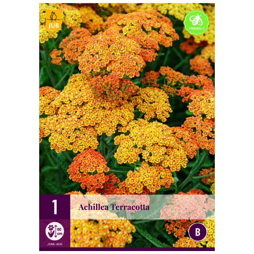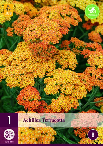 După cum sugerează și numele, Achillea millefolium Terracotta (coada pisicii) are flori de culoarea teracotă, în formă de umbrelă și înflorește din iunie până în august. Umbrele devin adesea galbene.
