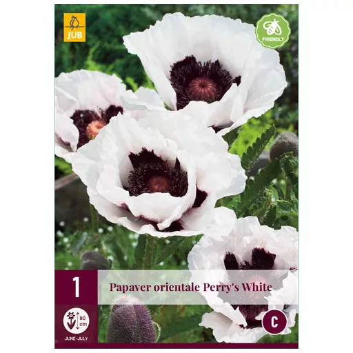 Poppy Perrys White este o plantă anuală accesibilă, care se combină frumos în straturile de borduri perene datorită culorilor sale albe și mov. Macul se dezvoltă cel mai bine în sol nisipos sau ușor argilos. Cel mai bun loc este adăpostit de vânt datorită petalelor sale subțiri. După înflorire, florile formează păstăi de semințe, acestea fiind cel mai bine îndepărtate pentru a permite macului să înflorească din nou.