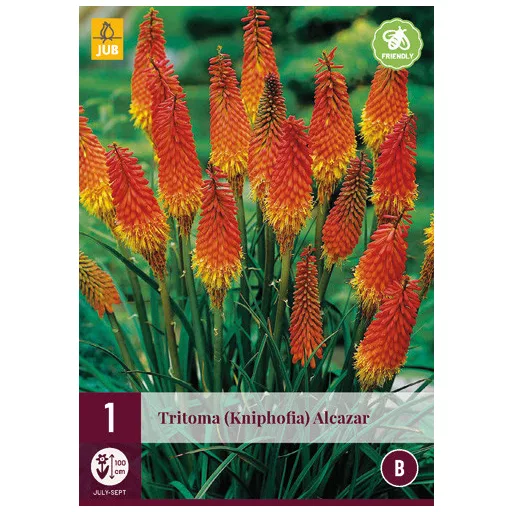 Tritoma (Kniphofia) Alcazar este una dintre cele mai neobișnuite flori din grădină. Inflorescența ascuțită și verticală, cu nuanțele sale portocalii și galbene aprinse, arată clar de ce Tritoma este numit crinul torță.