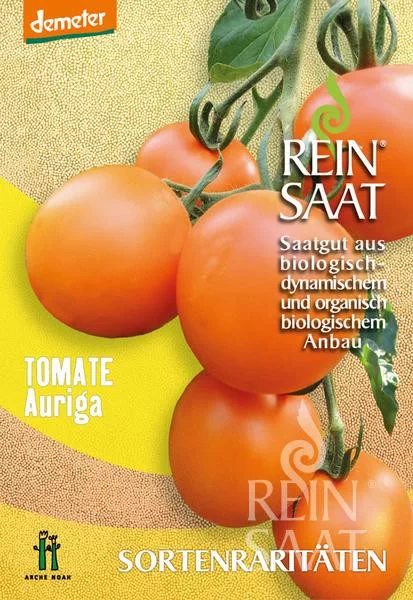 Roșiile Auriga au un fruct rotunjit, de o frumoasă culoare galben-portocalie, care nu este predispus la crăpare. Este o roșie suculentă, cu o aromă delicată, echilibrată. Foarte bogată în caroten.