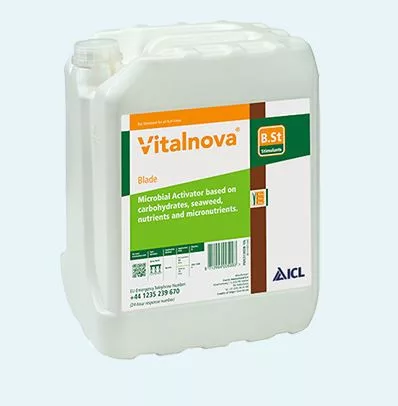 Vitalnova ® Blade este un produs lichid care reprezintă viitorul îngrijirii gazonului. Oferă o sursă directă de energie pentru gazon, conține macro- și microelemente, extract de alge marine și carbohidrați care furnizează zaharuri simple ușor utilizabile acolo unde sunt necesare. Îmbunătățește viața solului prin îmbogățirea populației bacteriene și sprijinirea dezvoltării micorizei, făcând rădăcinile mai sănătoase și mai viguroase. Semințele de gazon germinează mai repede, gazonul se consolidează mai devreme, ciclul nutrienților este intensificat deoarece nutrienții fixați devin accesibili gazonului. Conține NPK, precum și fier și alte microelemente.