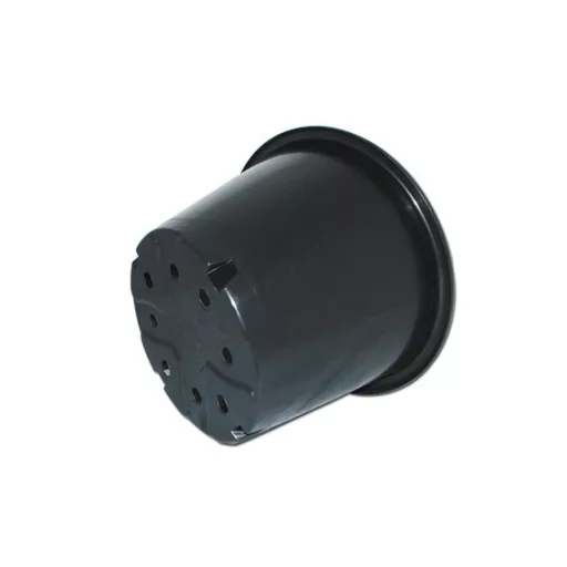 Ghiveci din plastic, culoare neagră, vândut individual, pentru cultivarea plantelor de dimensiuni medii.